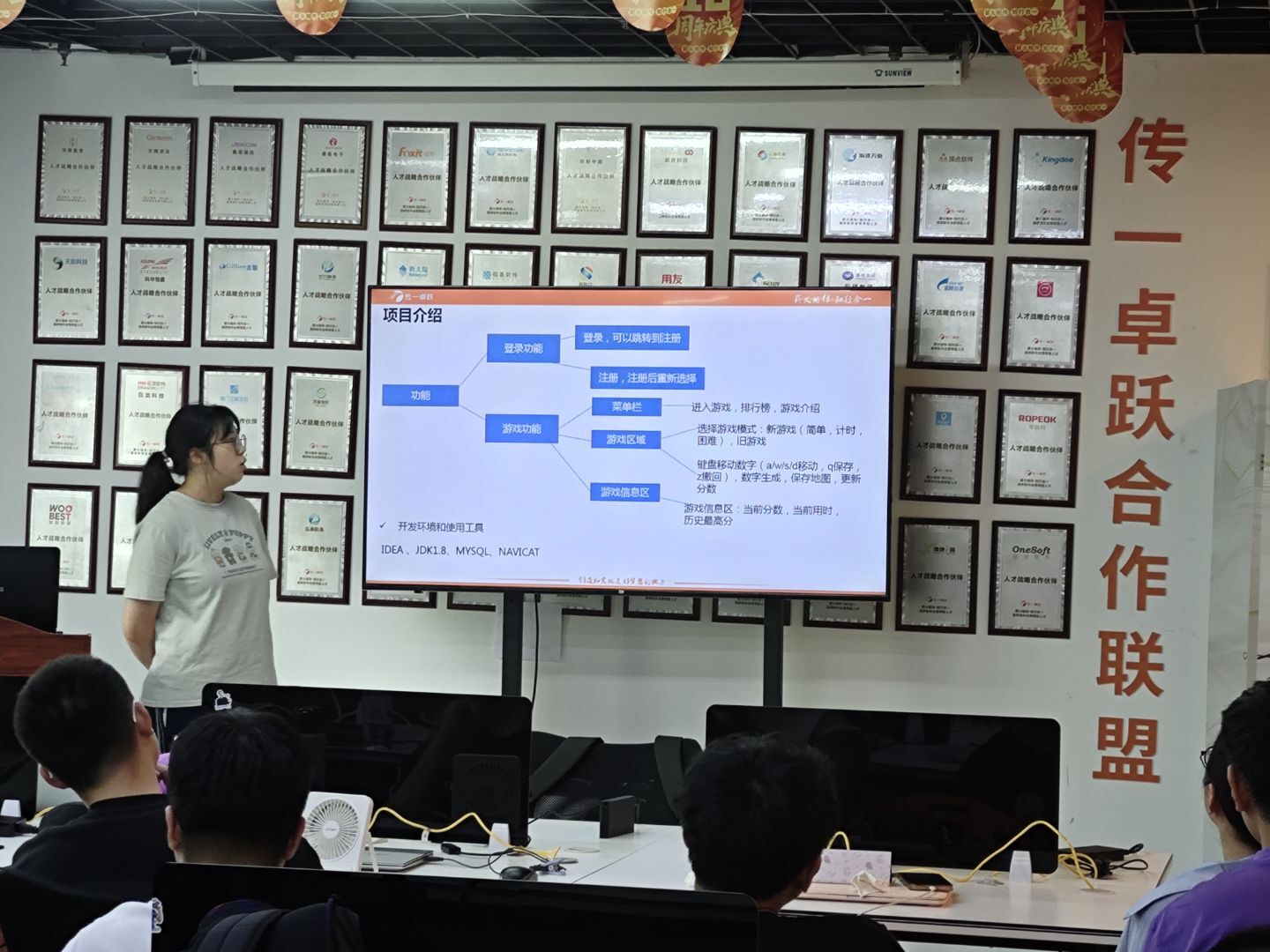 近日,为了检验同学们的学习成果,我们组织大家开设了一场项目评审会,由蔡老师和吴老师做为现场项目评审。这不是一场简单的演示,而是一次真刀真枪的“技能大阅兵”,更是学员们将初步阶段所学融会贯通、倾力呈现的高光舞台!项目亮剑:从0到1的实战蜕变 同学们在规定时间内,演示项目背景、做功能模块分析、技术难点介绍及项目视频演示,展示自己的想法及对所学技术的灵活应用,同时分享项目开发过程中自己的心得体会,表示在这段时间的学习中自己收获了很多,从开始的迷茫到逐渐有了编程思维再到现在自己独立完成项目的开发,慢慢在这个过程中建立了信心。项目展示核心模块设计